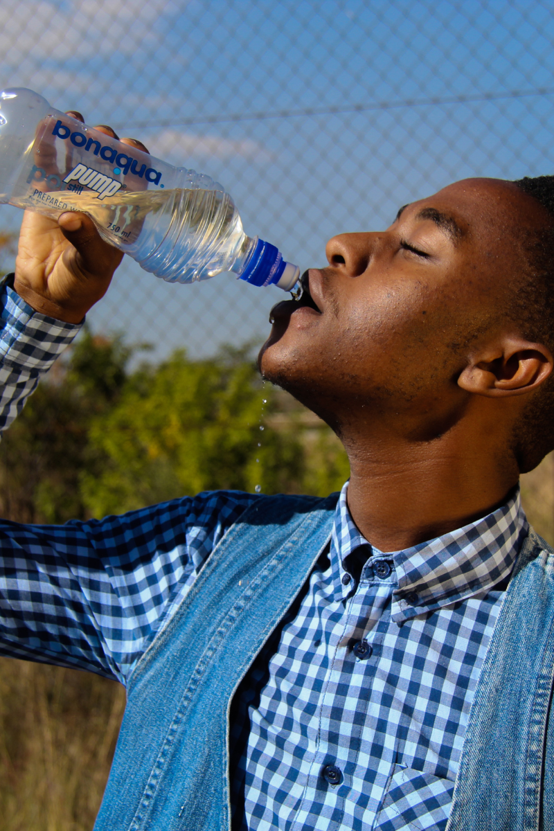 Manter uma garrafa de água na mesa ou na bolsa facilita lembrar de beber água durante o dia.